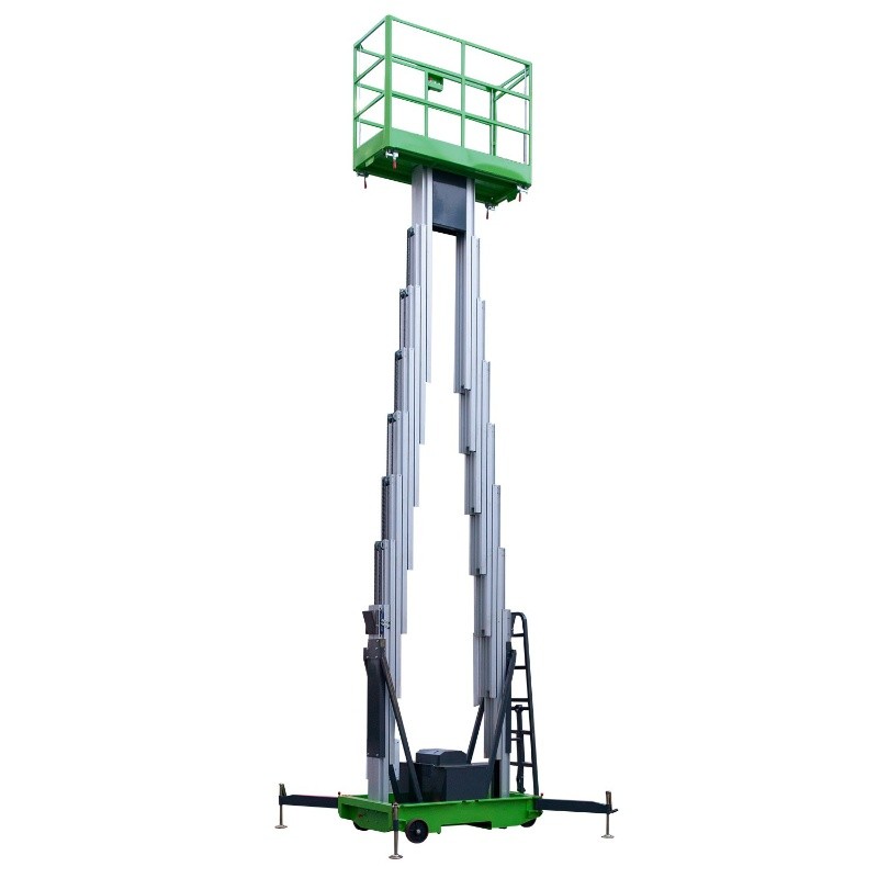 Χαρακτηριστικά της πλατφόρμας εναέριας εργασίας από αλουμίνιο διπλού πτερύγα: λάστιχα χωρίς σήμανση και ανωδικοποιημένο αλουμινένιο πτερύγιο.ελαφριάΤο σύστημα αυτό λειτουργεί με τον τηλεσκοπικό κύλινδρο, ο οποίος είναι ισχυρός και αξιόπιστος και οι πίνακες ελέγχου είναι διαθέσιμοι στις πλατφόρμες ανελκυστήρα και στο έδαφος.